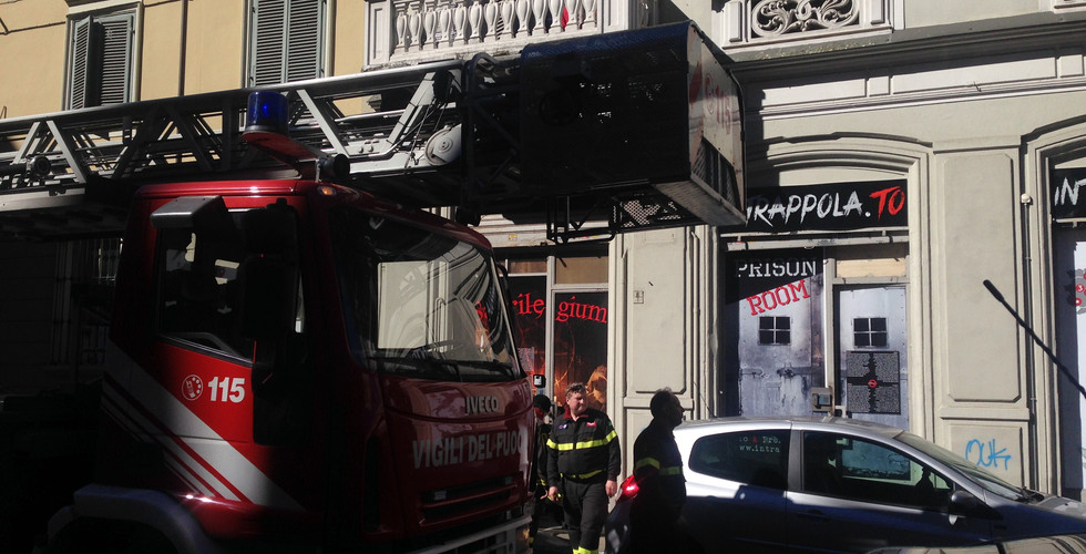 Intervento dei Vigili del Fuoco a Torino davanti ad Intrappola.To in Via Gioberti.